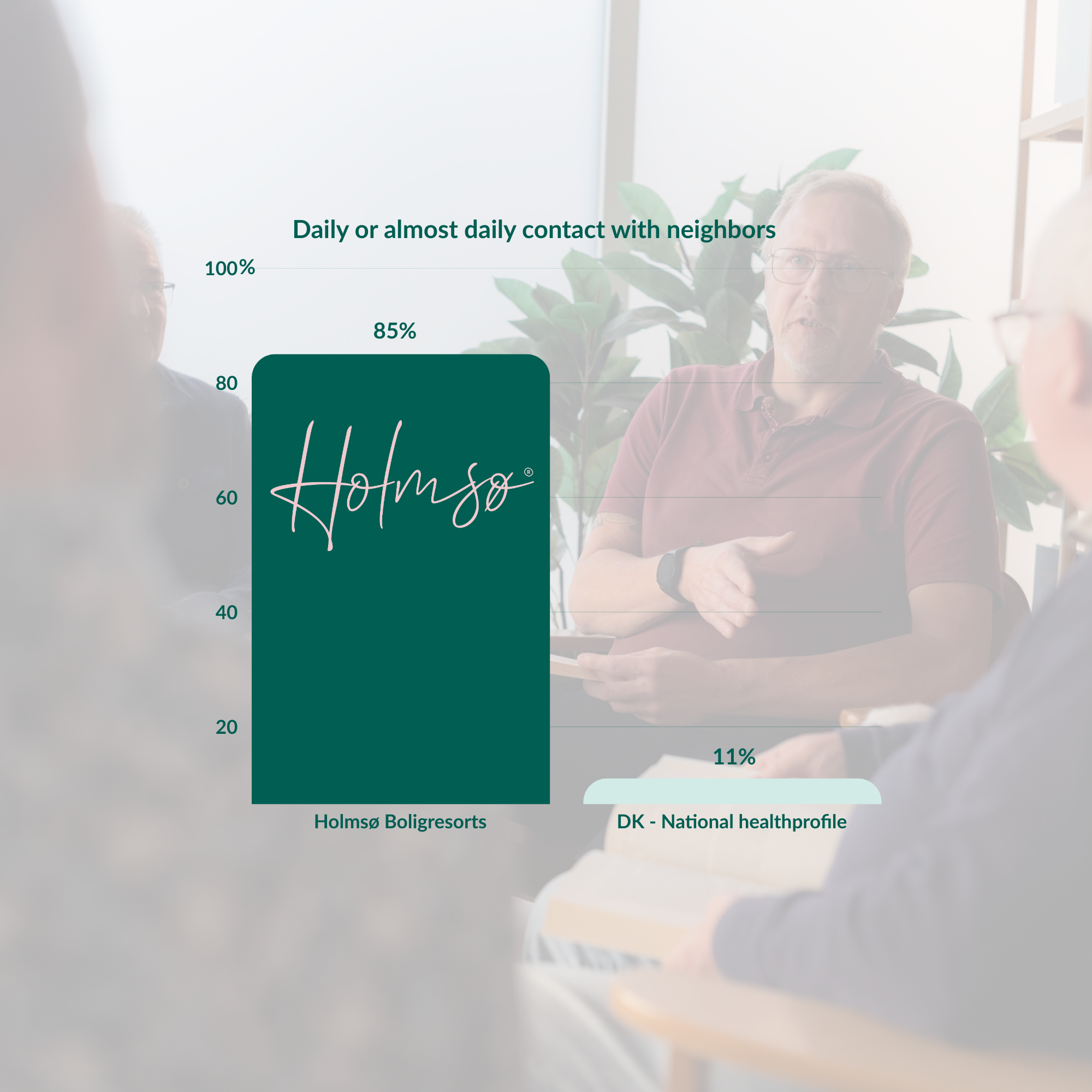 Holmsø is not just a place to live - it is a framework for the good life. Our latest resident surveys (autumn 2025) show in black and white that the combination of a safe environment, extraordinary facilities and strong neighborhood communities creates a noticeable boost in both health and happiness. When we compare our figures with national measurements (RealDanias bianual health study), the result is clear: Life is just a little better in Holmsø.